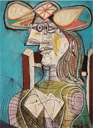 Femme assise (Dora) (Seated Woman) 1938, ink, gouache and chalk on paper, 76.5 x 56; Museum Basel (own photography). Dissolution of the body into geometric shapes, emphasis on the cubist.
